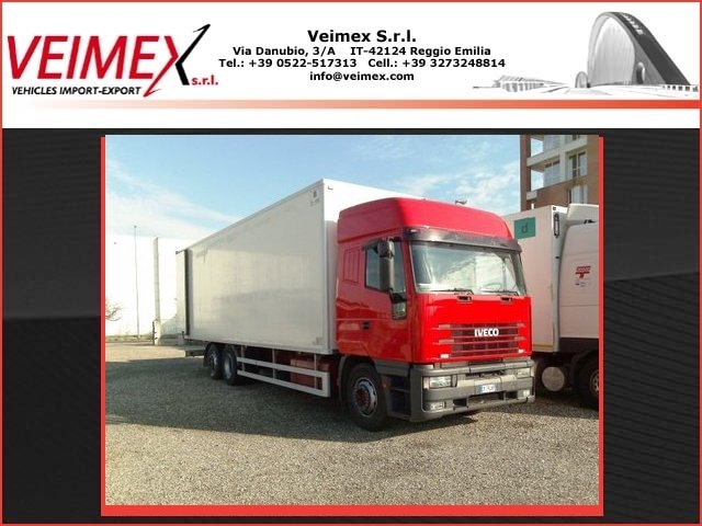Gearbox Type: Manual ZFGears: 16 + 2 R.G.Tyres: 315/ 80R22, 5Cab Type: Tip-upCab Space: BedBed Number: 2Axles Number: 6x2Wheelbase: 6.000 mmWheelbase + 3rd axle: 1.395 mmTowing weight: 18.000 KgLoading weight: 15.005 KgTotal weight: 26.000 KgBox:Body Make: Nuova MetalplastBox Type: IsothermalA.T.P. Ty ... |