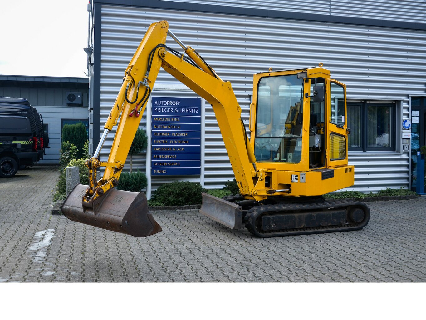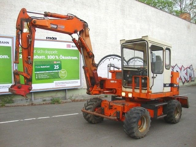 Schiebeschild, 1 Tieflöffel 260-er, 1 TL: 400, 1 GRL: 1000, Knickmatik, Kette/ Laufwerk: 80%, Motor: 3-Zylinder Diesel Deutz Motor 13, 3kw, GGW: 1485kg, Hammer-/ Greiferhydraulik, Arbeitsscheinwerfer. Grabtiefe: 2210, max. Ausladung: 3900, Ausschütthöhe: 2370, Bedienungsanleitung, Transportmaße LxBx ... |