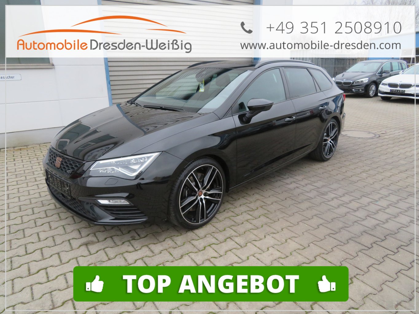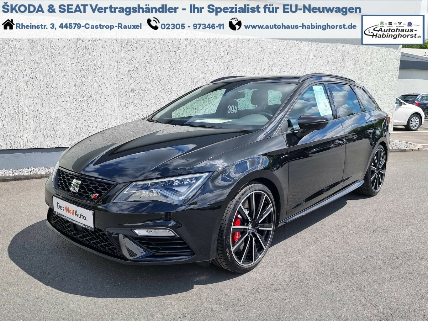 Klimaautomatik, Sportsitze, Scheibenwaschdüsen beheizbar, Regen-/ Lichtsensor, ESP, Multifunkt.-Lenkrad, Sportfahrwerk, Einparkhilfe (PDC), Navigation, Zentralverriegelung + FB, ABS, Glasschiebedach, Berganfahrassistent, Alcantara/ Stoff Polsterung, Bluetooth, SWW, 19 Alufelgen, Seat Media System, dkl ... |